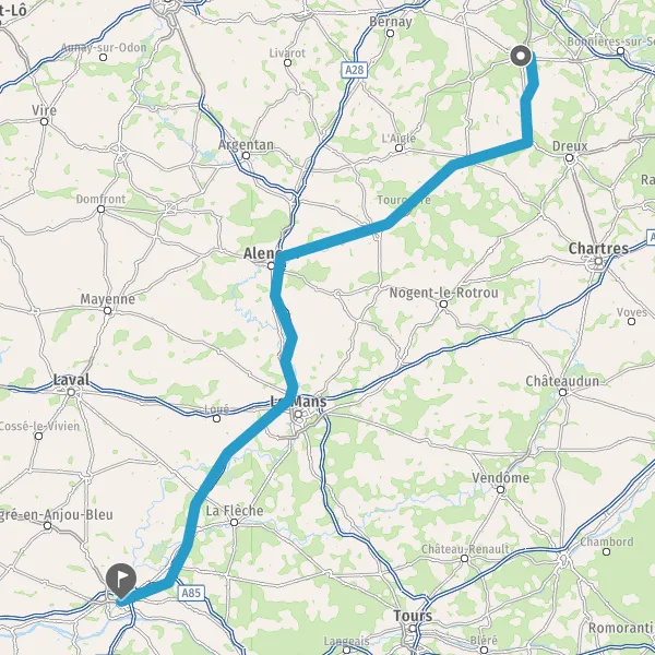 Prendre à droite et rejoindre A11 E50. Continuer sur 2,9 kilomètres