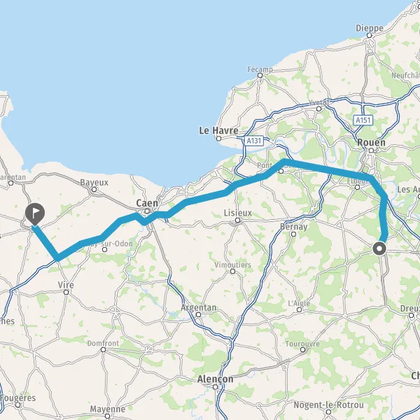 Prendre à droite et rejoindre A84 E401. Continuer sur 45 kilomètres