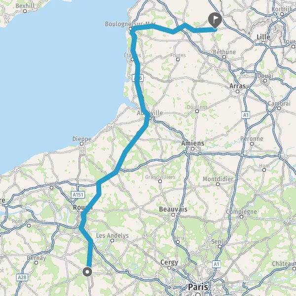 Prendre à droite et rejoindre N28 D6028 E402 E46 (Pont Mathilde). Continuer sur 52 kilomètres