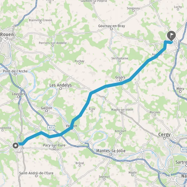 Tourner légèrement à droite sur D57 (Rue de Vernon) et continuer sur 9 kilomètres