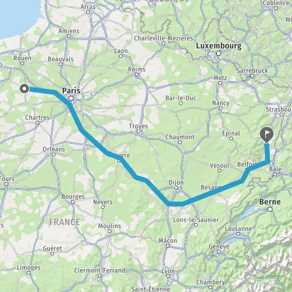 Prendre à droite et rejoindre A36. Continuer sur 225 kilomètres