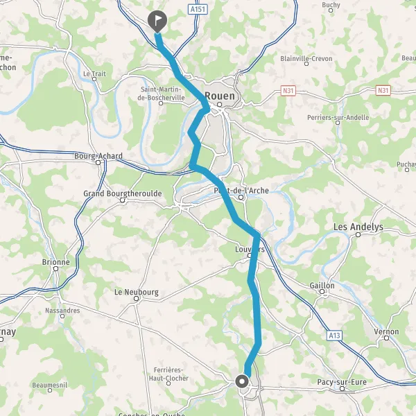 Tourner légèrement à droite sur Pont Gustave Flaubert et continuer sur 12 kilomètres
