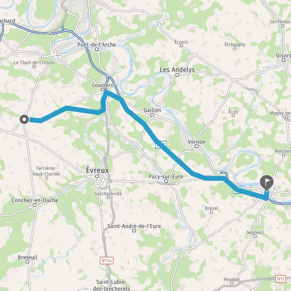 Prendre à droite et rejoindre N13 (Route Nationale 13). Continuer sur 3,4 kilomètres