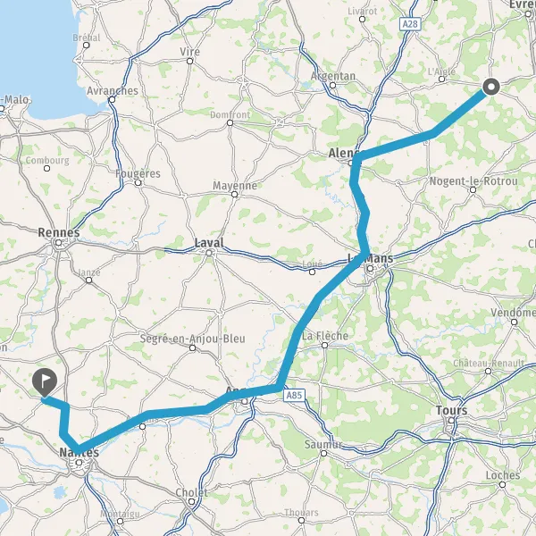 Continuer N12 (Rue de Brest) sur 16 kilomètres