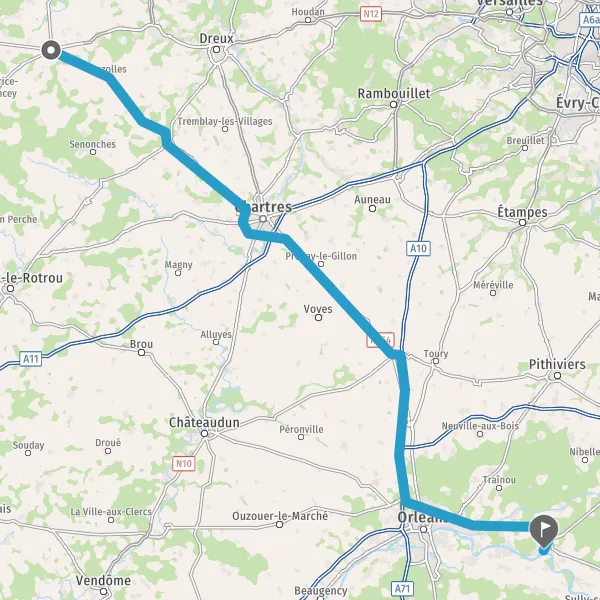 Au rond-point, prendre la 1ère sortie sur D939 (Route de Chartres) et continuer sur 17 kilomètres