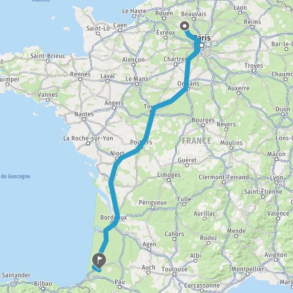 Prendre à droite et rejoindre A63. Continuer sur 117 kilomètres