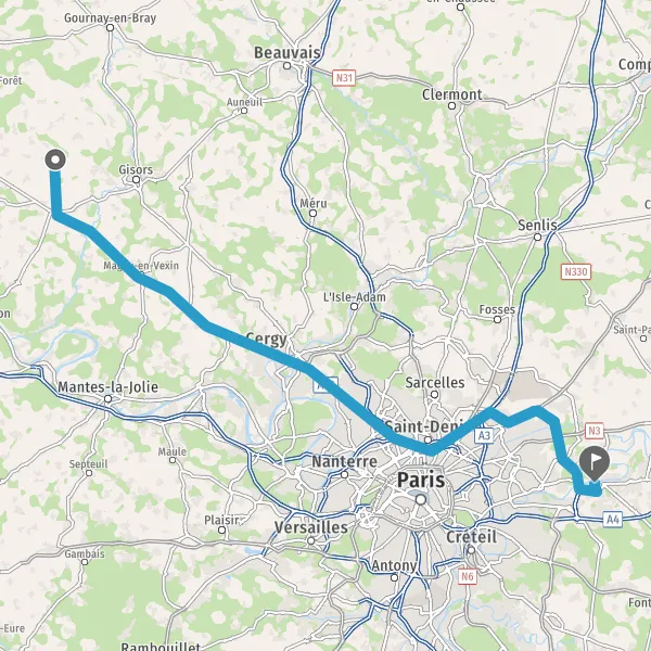 Prendre à droite et rejoindre A104. Continuer sur 15 kilomètres