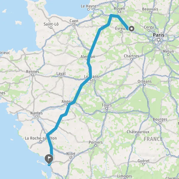 Continuer E501 (L'Océane) sur 84 kilomètres
