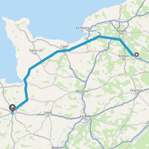 Prendre à droite et rejoindre A84 E401. Continuer sur 165 kilomètres
