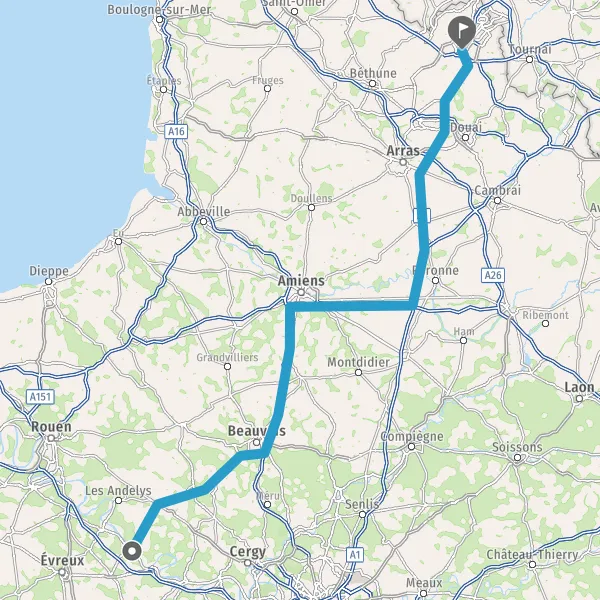 Continuer E19 (Autoroute du Nord) sur 124 kilomètres