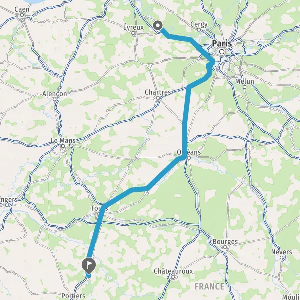Prendre à droite et rejoindre A10 E5. Continuer sur 235 kilomètres