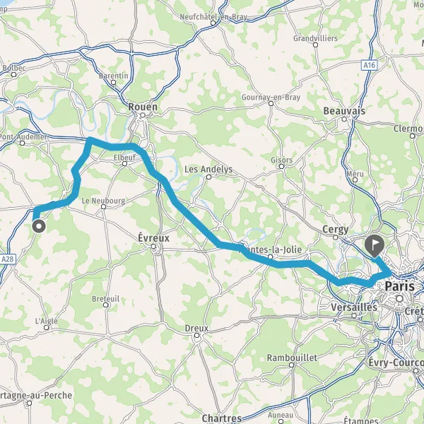 Prendre à droite et rejoindre A28 E402. Continuer sur 37 kilomètres