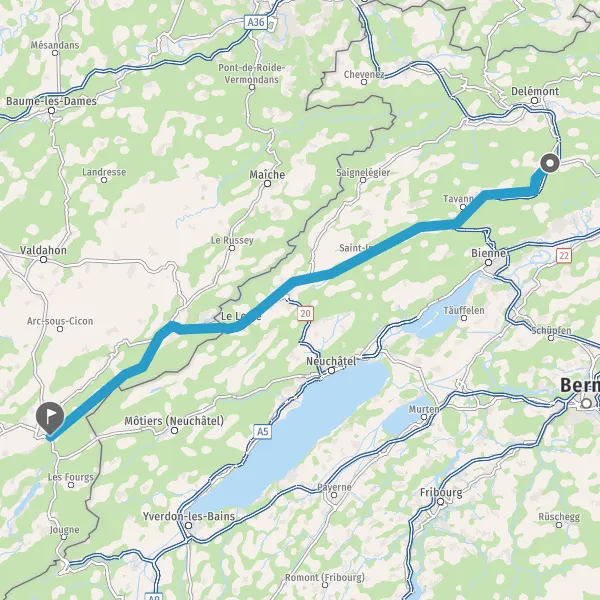 Au rond-point, prendre la 2ème sortie sur 20 (Rue du Locle) et continuer sur 550 mètres