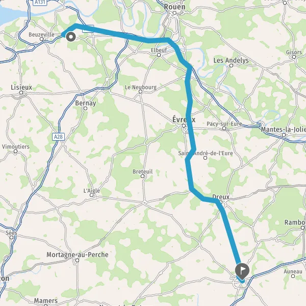 Prendre à droite et rejoindre A154. Continuer sur 28 kilomètres