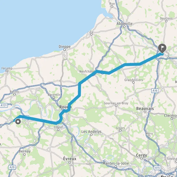 Prendre à droite et rejoindre A13 E46. Continuer sur 39 kilomètres
