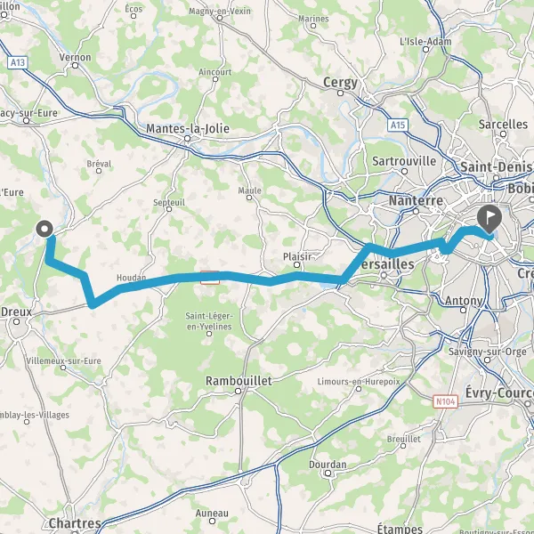 Tourner légèrement à droite sur D21.2 (Rue de Houdan) et continuer sur 5,7 kilomètres