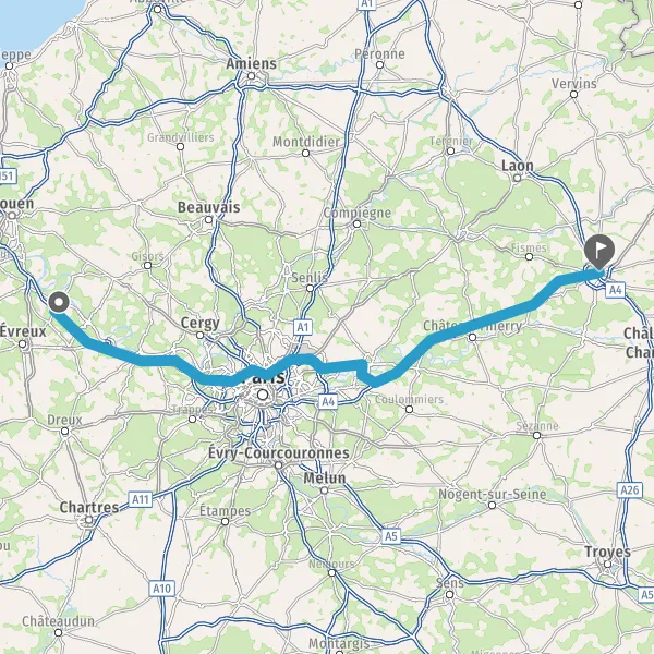 Prendre à droite et rejoindre A13 E5. Continuer sur 59 kilomètres