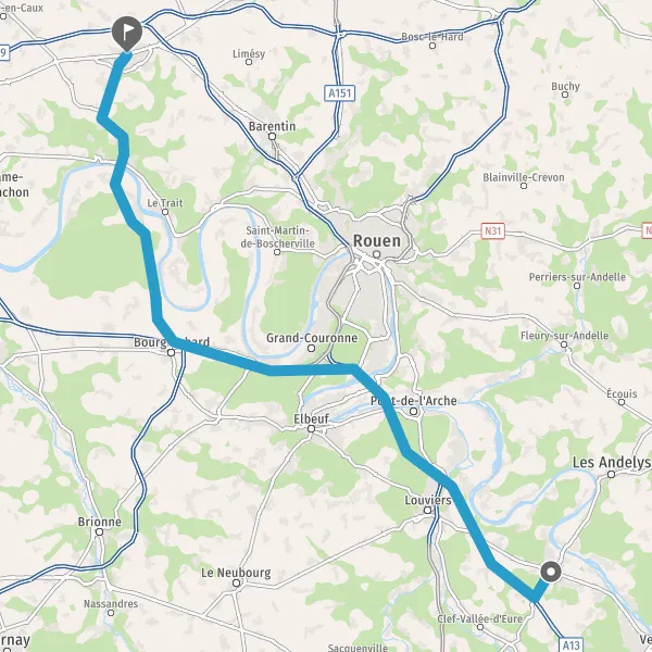 Tourner légèrement à droite sur Pont Gustave Flaubert et continuer sur 29 kilomètres
