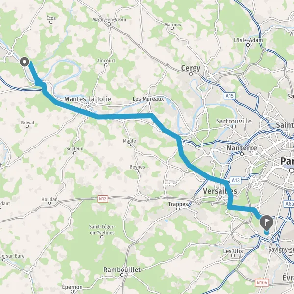 Prendre à droite et rejoindre A86. Continuer sur 6 kilomètres