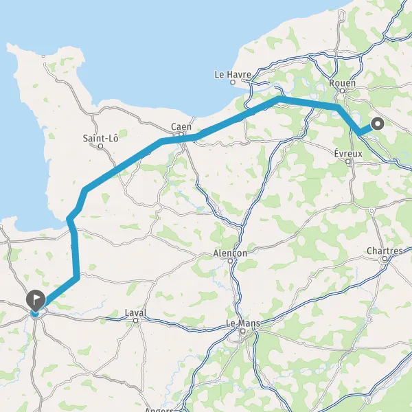 Prendre à droite et rejoindre A84 E401. Continuer sur 165 kilomètres