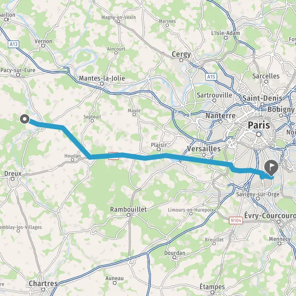 Au rond-point, prendre la 3ème sortie sur D21.6 (Rue des Yvelines) et continuer sur 2,5 kilomètres