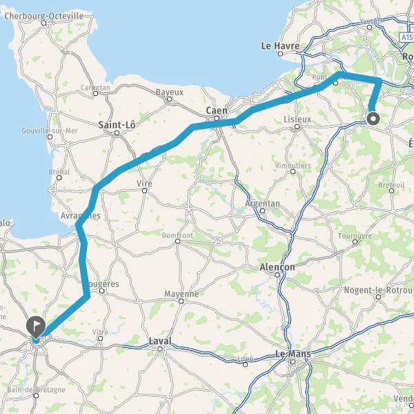 Prendre à droite et rejoindre A84 E401. Continuer sur 165 kilomètres