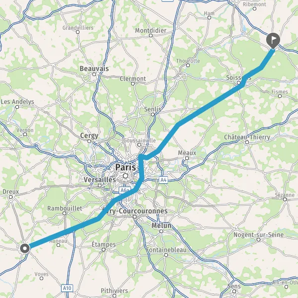 Prendre à droite et rejoindre A10. Continuer sur 2,6 kilomètres
