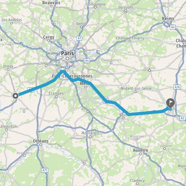 Prendre à droite et rejoindre A11. Continuer sur 31 kilomètres