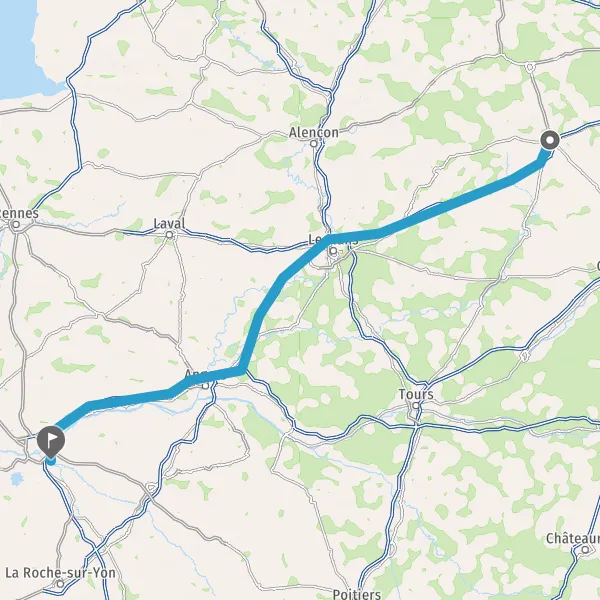 Prendre à gauche et rejoindre A11 E50. Continuer sur 105 kilomètres