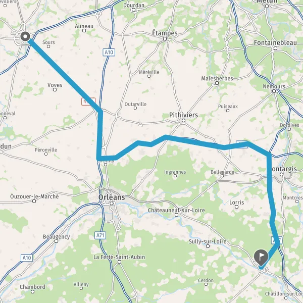 Prendre à droite et rejoindre A19. Continuer sur 66 kilomètres