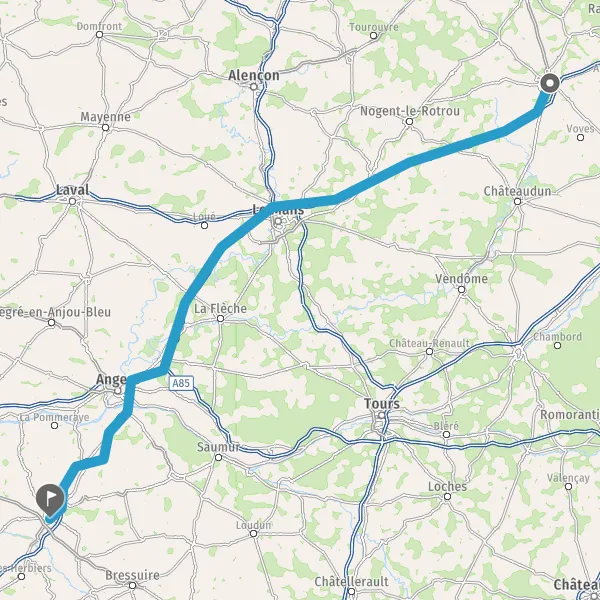 Prendre à gauche et rejoindre A11 E50. Continuer sur 105 kilomètres