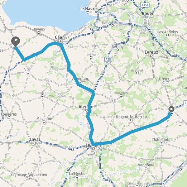 Prendre à gauche et rejoindre A11 E50. Continuer sur 102 kilomètres