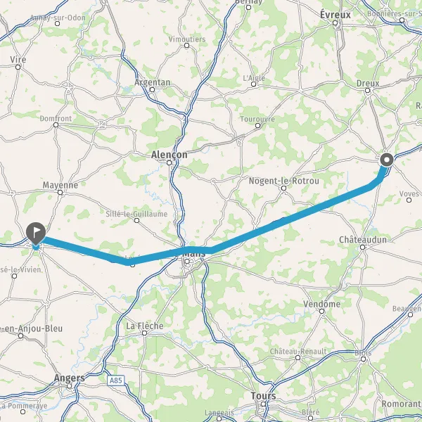 Prendre à gauche et rejoindre A11 E50. Continuer sur 105 kilomètres