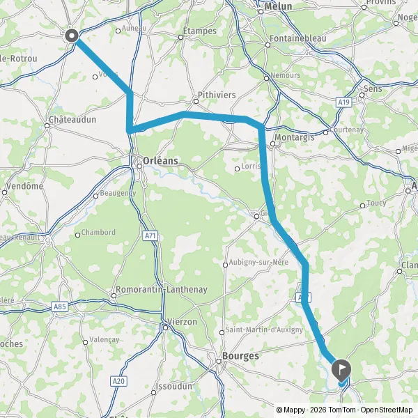 Prendre à droite et rejoindre A19. Continuer sur 66 kilomètres