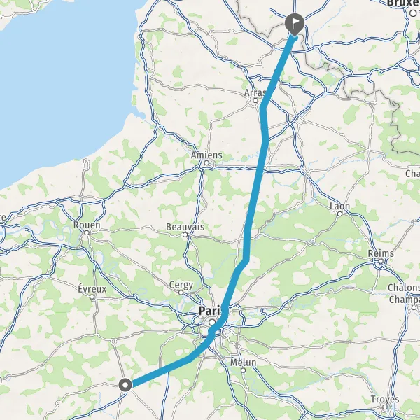 Continuer et rejoindre A1 A1 E15 E19. Continuer sur 121 kilomètres