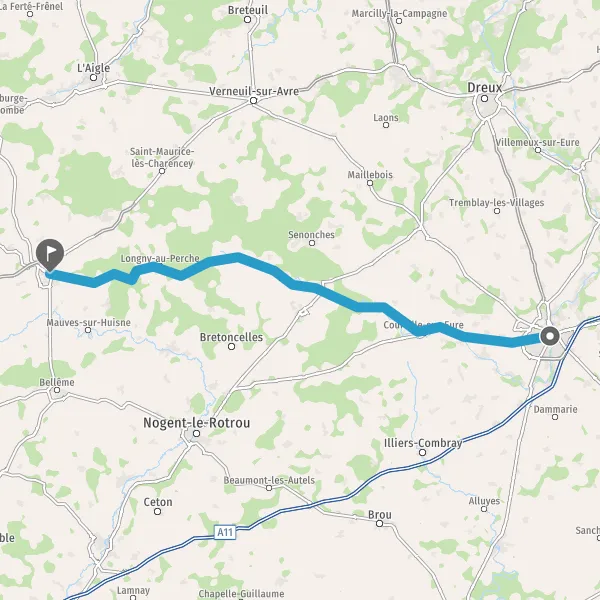 Tourner légèrement à gauche sur D23 (Rue de Pontgouin) et continuer sur 230 mètres