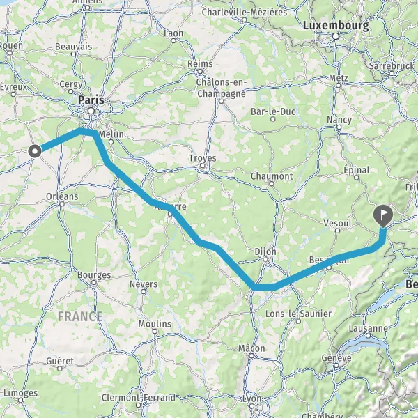 Prendre à droite et rejoindre A36. Continuer sur 176 kilomètres