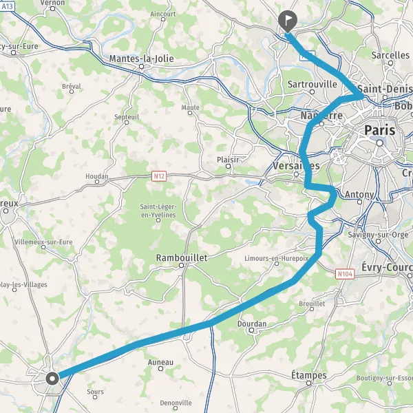Tourner légèrement à droite sur D910 (Rue d'Ablis) et continuer sur 1,4 kilomètre