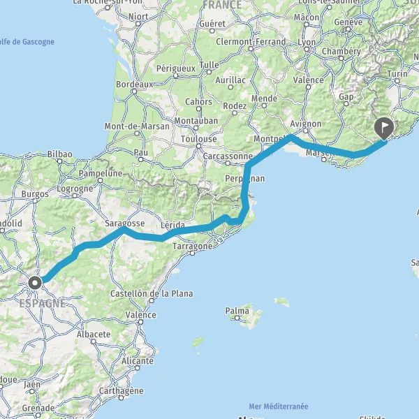 Tourner légèrement à droite sur AP-7 E-15 et continuer sur 58 kilomètres
