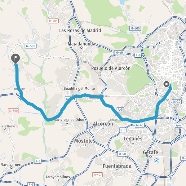 Au rond-point, prendre la 2ème sortie sur M-600 M-600 (Avenida de Villanueva de la Cañada) et continuer sur 450 mètres