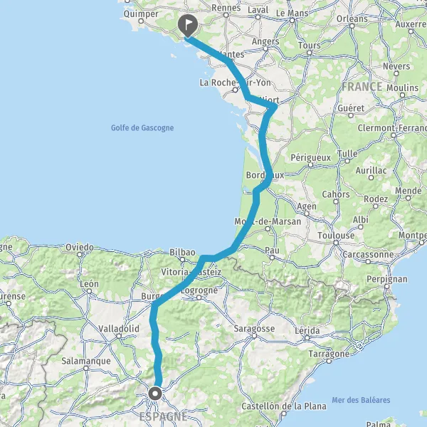 Payer 2,00 € (Péage Biriatou) Autoroute de la Côte Basque Payer 2,80 € (Péage La Negresse) Payer 4,30 € (Péage Benesse) Payer 4,40 € (Péage Castets) Payer 4,40 € (Péage Saugnacq-et-Muret) 470 km