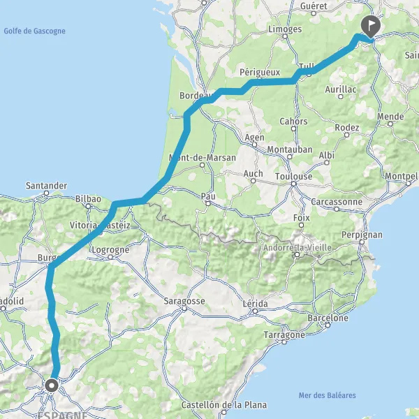 Prendre à droite et rejoindre AP-1 AP-1 AP-8 E-80 E-70 E-70 E-5 E-5. Continuer sur 20 kilomètres