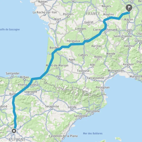Prendre à droite et rejoindre AP-1 AP-1 AP-8 E-80 E-70 E-70 E-5 E-5. Continuer sur 20 kilomètres