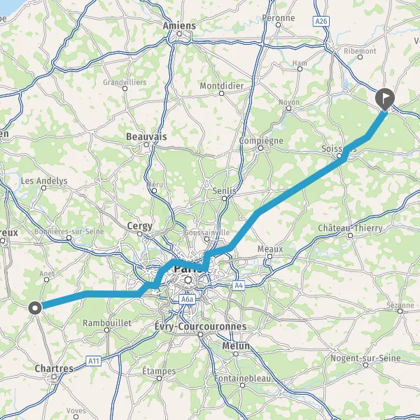 Prendre à droite et rejoindre Avenue de Laon. Continuer sur 1 kilomètre
