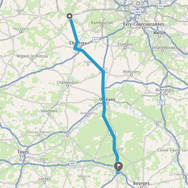 Prendre à droite et rejoindre N154 (Route de Chartres). Continuer sur 27 kilomètres