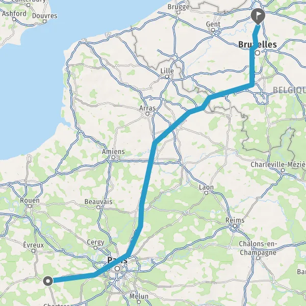 Continuer E19 (Autoroute du Nord) sur 124 kilomètres