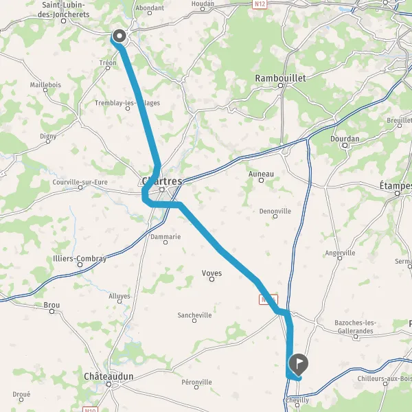 Au rond-point, prendre la 2ème sortie sur N154 (Route de Chartres) et continuer sur 27 kilomètres