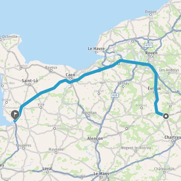 Prendre à droite et rejoindre A84 E401. Continuer sur 93 kilomètres