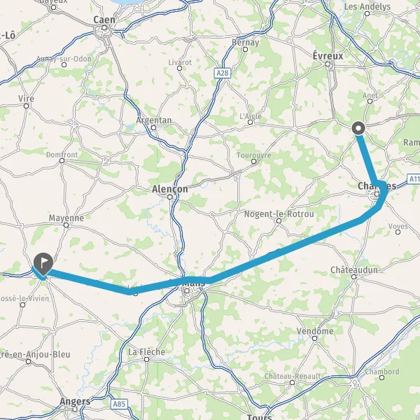 Prendre à gauche et rejoindre A11 E50. Continuer sur 105 kilomètres