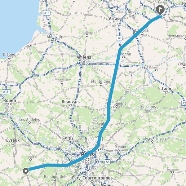 Continuer E19 (Autoroute du Nord) sur 124 kilomètres